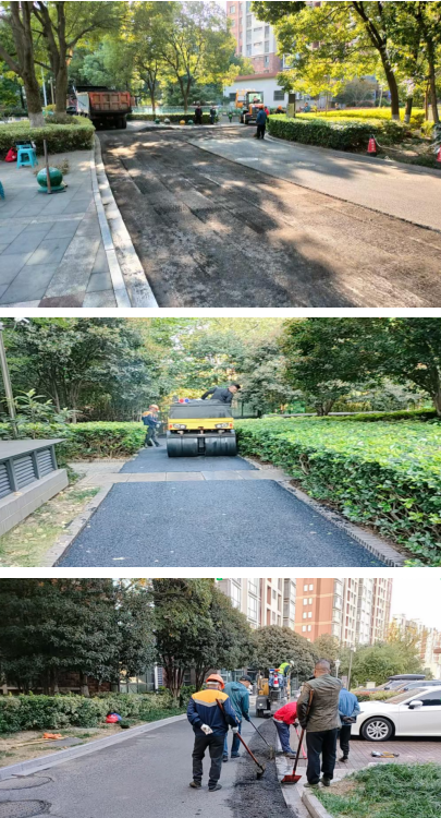 作为新入驻的物业服务团队,德和行物业入场伊始便深入小区走访调研,发现部分主次干道及单元门口路面因常年使用,出现了不同程度的裂缝、坑洼,雨天积水、晴天扬尘,给居民出行带来诸多不便,尤其是老年业主和学龄儿童的通行安全令人担忧。业主的诉求就是工作的优先级,服务处第一时间向小区业委会报备、协商,当了解到动用小区公共收益维修道路事宜已经得到业主代表大会表决同意后,立即组建专项工作小组,对破损路面进行全面排查登记,结合小区通行流量、路面破损程度等实际情况,与小区业委会一起制定维修方案,公开选聘施工单位,明确施工流程、安全规范及时间节点,力求以最高效率解决业主出行难题。